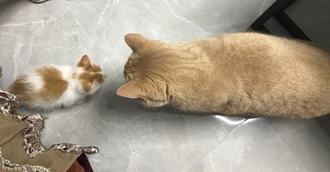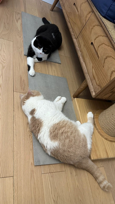 前言————我的目标是:坐拥8只猫 当初养第一个娃,每天都要跟我玩游戏,扔玩具又含回来给我,后来养了二胎,本以为左右护法,幻想两个都追着我玩,现实往往残酷,他们竟然成了对方的依靠,随时随地粘在一起,我只是个第三者