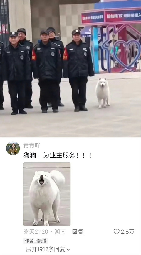 被这只狗狗笑惨了别人是保安大叔站岗为业主服务它是 狗狗站岗为业主服务还必须亲力亲为,摸不了一点鱼 某书看到的@互联网研究生
