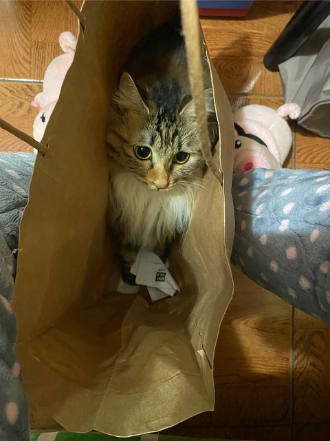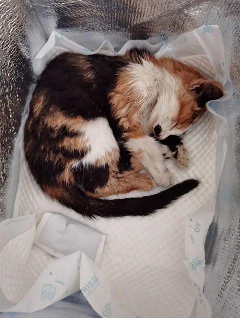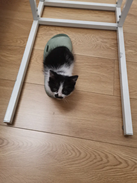 十一月的时候捡到一只小三花,当时在朋友圈找领养,后来封控撒,却一直找不到领养,我正好搬走自己住,就收养了这只小崽子