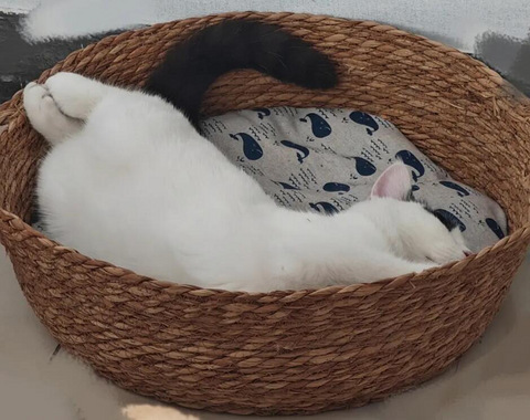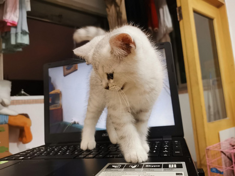 刚弄回来的时候周身都是病,耳螨堆满了,全身都是猫藓,还串希,臭烘烘的,就取名叫臭臭。本来我家还有另外三只猫,臭臭一来就黏上了白胖子。瘦成皮包骨,开始屋头到处拉,过了几天终于学会了用猫砂。一度以为它要洗白,还好挺过来了。慢慢慢慢就长大了。集体洗澡,集体烤火!现在变成了最黏人的一个,也是最调皮的一个……