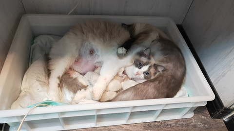 我家主子生宝宝啦~有4只小可爱,给小可爱们找新家哈!6.6号满月后可接走,有兴趣的私聊吧。欣赏照片片