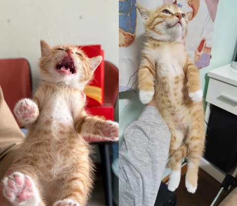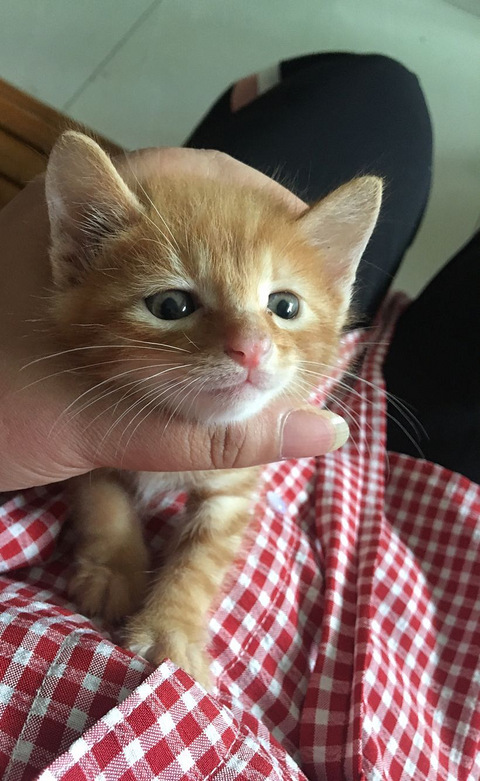 麻圆小朋友是一个阿姨带来的,是她们小区里流浪猫生的,大概是九月底出生的,小小的一只,放兜里就能带走,可爱死了