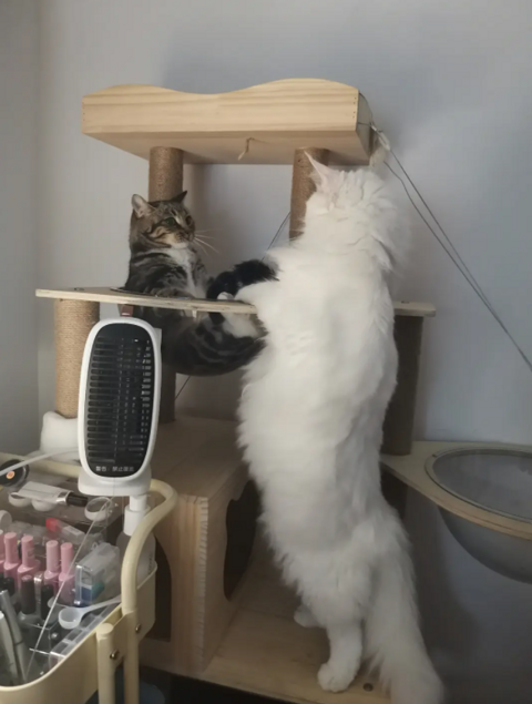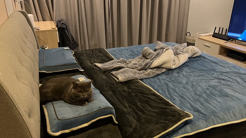 两个枕头,非要睡在我睡的那个上,没人睡的那个就不闻不问外套一脱又睡上去了