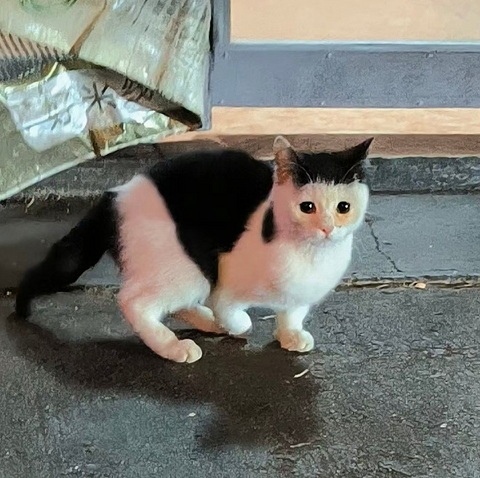 小区流浪猫下的猫猫,后面两个脚被踩了还是打了,走路像美人鱼,但是努力的爬到猫砂盆上厕所,可怜的很,先收起养到公司,好了拿回家养