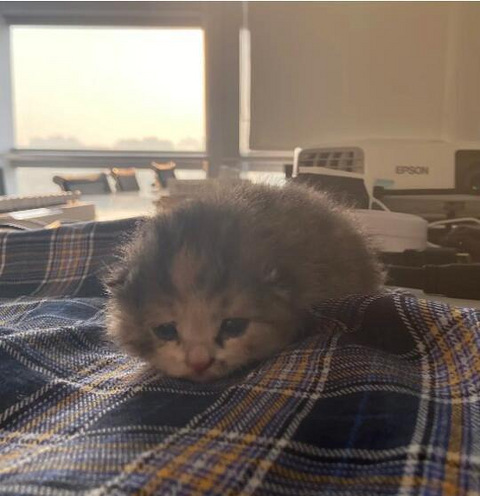 公司楼下捡来的,去医院想去检查一下,医生说太小了,不给检查,让回去好好养着就可以了,现在给他喝的羊奶粉,我会好好对你的哦!小猫咪快快长大吧!