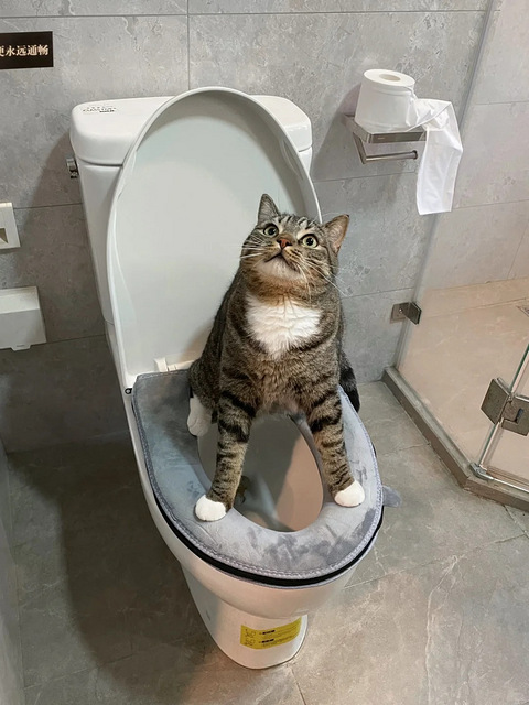 太羡慕了 真的是别人家的猫,没人教就会自己用马桶 网友说:自己忘关厕所门,猫竟然蹲上去了...小猫咪拉不出粑粑也会在马桶上发呆的吗?