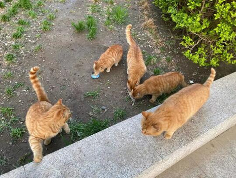 小区里有一群流浪的橘猫,我都是抽空去喂饭