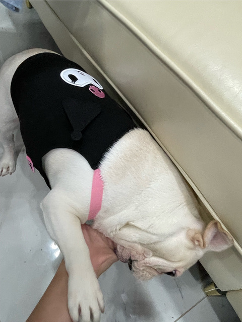 现在给狗狗买衣服基本都是100 韩国代购的这件库洛米 穿在奶油色法斗的身上 简直是灾难