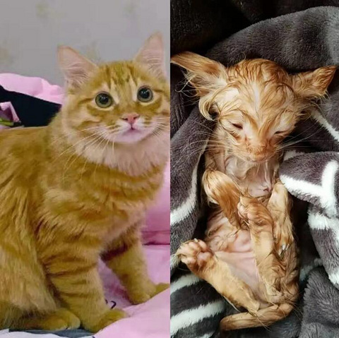 刚捡到的时候只有半斤不到 ,满身的虱子跳蚤,朋友一只只抓,外用福来恩喷剂。洗完澡之后的外星人?vs半岁大,这是我做的对比图 ,简直仙女逆袭小橘子从小就很粘人,也很活泼。长大之后会带着原住民(英短串串 2019.12月领养的)在家里跑酷,偶尔拆家,哈哈哈哈但是都能接受,因为他粘人!一摸就呼噜,随便rua,喜欢拍屁股!