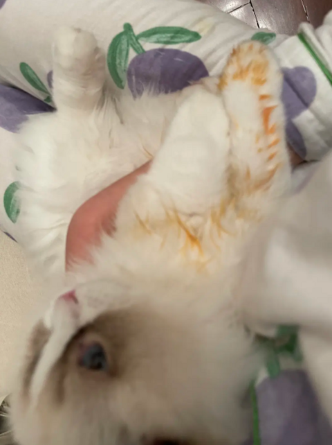 我在吃饭,我家猫一下子把红油盖子打掉了,沾了好多,咋办啊一帮它擦它就跑,现在它在痛苦地舔毛啊啊啊啊啊