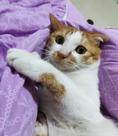 我们家的猫咪是一只小猪咪,睡觉呼噜声经常把我吵醒,自己在那里睡得香得很