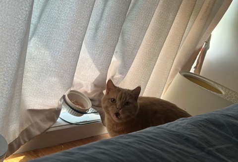 带了点猫粮给它吃(已绝育剪耳),从长椅上跳下来时,地板会发出沉闷的咚隆一声……