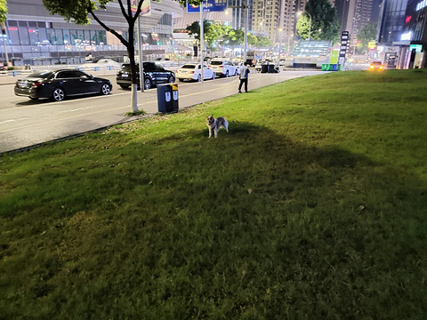 光环附近遛狗还可以。狗狗看到草坪它好高兴。