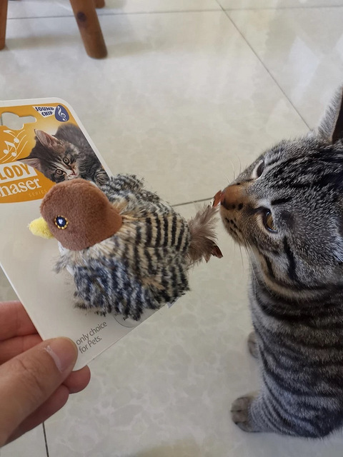 不能只自己闷闷的生气不开心,一定要说出来才过瘾,之前买了电动的小鸟,结果猫咪并不爱玩·········