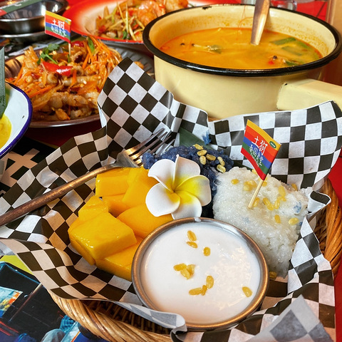 打卡了九街这家土狗泰国菜,个人觉得最好吃的两个菜是芒果糯米饭和瀑布面,烤鱼也还不错。鸡爪不辣凉拌的很多水分不推荐,我必点的冬阴功汤味道也很一般,没有什么鲜味。