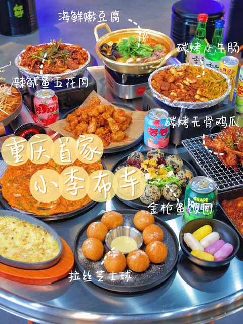前几天去大悦城玩儿,发现这里开了一家小李布车火遍延吉的超人气韩料真的绝绝子满满的韩国大排档风,年轻朋友必打卡·小李布车韩式大排档重庆大悦城5L人均58R11:00开始营业·正儿八经吃过的真实推荐小李辣鸡爪锅完全属于是必点系列了,鸡爪真的巨耙,一抿就脱骨配上韩式辣酱完全不输重庆麻辣味儿哈-碳烤无骨鸡爪这款的味道属于甜辣口,韩国味道直接满足依然是糯糯的口感,吃一口停不下来-拉丝芝士球上桌就请你们立马拉