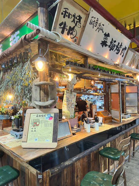 周一下午来到民主村综合市场,无意发现一家菜市烤肉店,云南民族风格,很惬意悠闲,还在试营业,咖啡味道一般。