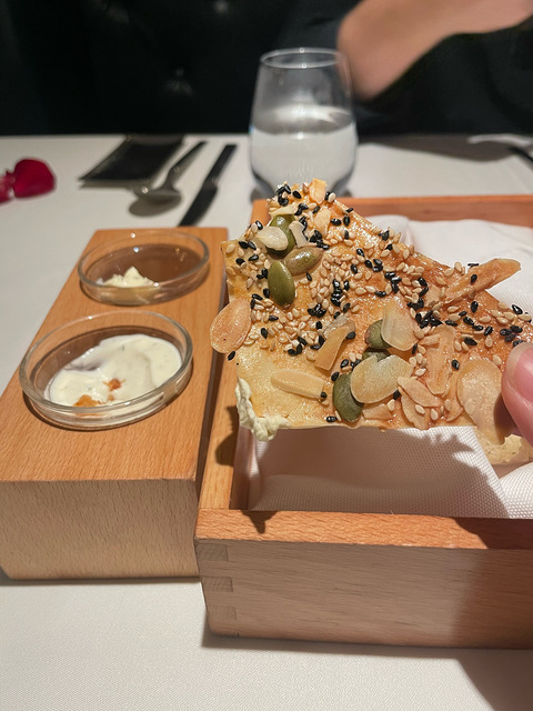 白金卡会员,每年生日月500元的代金券前面吃了他家的海鲜套餐半夜两个人轮流拉肚子后,去年我不去了今年又鼓起勇气去试试,没想到感受好太多啦!点对菜有多么重要 我们还是选的万象城那家888的双人套餐环境重新装修过?依稀感觉比上次去敞亮些这次我不想吃以前的菜式了基本都选了新的感觉他们餐单也调整过 餐前面包,多了薄脆 饮料,我觉得有点像芬达,以前那个玫瑰香颂没看见了