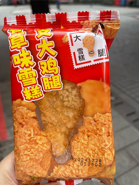 前段时间看到好多小红书博主安利罗深这个大鸡腿冰淇淋,看到图片是很有诱惑力!忍不住去买了个,9.9一个,做的挺逼真的,外面的就是一点饼干碎碎,里面就是普通的冰淇淋啊,到底是谁在说它吃起来跟炸鸡皮一样啊[ej=1F604]
