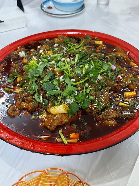 yq前打卡了一家 味道还不错在论坛上看到的 离家近 ,第二天就去打卡了 就是这家,我们一共2人,所以团的是68元套餐 佐料是辣咸的那种 应该是贵州那边的口味 鸡肉是烤的,还有鸡肠 鸡皮 蘸旁边的干海椒 味道可以很香鸡血是麻辣味的,很下饭,最后没吃完还打包回去了土豆片麻辣的 还加了节儿根混在一起吵的 很好吃手撕包菜也很很不错,每个炒菜都加了节儿根一起吵的 吵的嫩南瓜也不错去打卡了和推广的一样