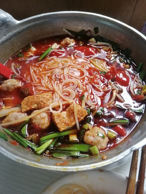劳动节第一天罐罐米线打卡比较辣辣的这次点的泡椒丸子砂锅