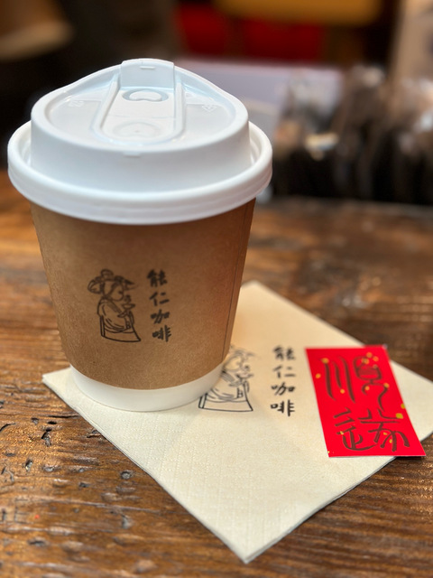 能仁寺,一家渝中区大隐于市的小寺庙,没有佛缘、不专心去寻找,路过上百次都会失之交臂;寺庙隐藏于好吃街与八一路中间,在以前最老的吴抄手店旁,进去之后才发现这片小小天地还能有如此完整的寺庙;咖啡店就在进门处,据说该店所有咖啡豆都开光过,讲究一个佛缘,买咖啡时可以随缘抽签,抽出有不同的豆子,咖啡做好后可以附送一张祝福纸条;既来之、则安之。咖啡味道属于中等水平,但是能有如此创新,也是惊艳全场。小能手评分: