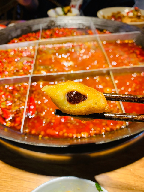 先来一张我最爱的爆浆糍粑一咬,红糖就跟着出来了好好吃在万象城的这家,这家门店前身开过好几家火锅,都做垮了,希望李火辣打破魔咒饭点来的,人还有点多,坐在外面排队入座啦,这个水壶好乖哟俊花黑新鲜~第一口吃个鸭肠子,我最喜欢裹满油碟,美滋滋火锅锅底算比较辣的,第一口就很入味 重点来了!哈哈哈哈杨梅冰汤圆,其实更像芋圆,好大一碗,吃起来很Q弹!炫了一大碗!