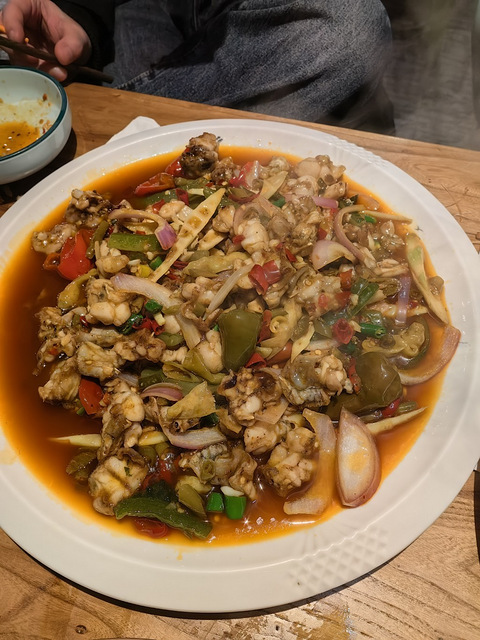 话不多说,直接开聊。今天中午才吃的一家,新鲜出炉。“佳香味三孃黔江鸡杂”(总店)听说是陈晓卿先生光临过,以为就是一般的鸡杂,没想到超出预期。食材清理得干净,应该是焯过水,基本没有杂质;佐料干净,基本保留了食材本色,味道却复合得恰到好处,吃完了锅里剩的油都是清亮的。上菜快,点菜五分钟不到就把小锅端上来了,是熟的,可以自己炒一下,参与感十足。分量很足,没得那些虛头巴脑的素菜打底(可以另外点素菜煮),酸