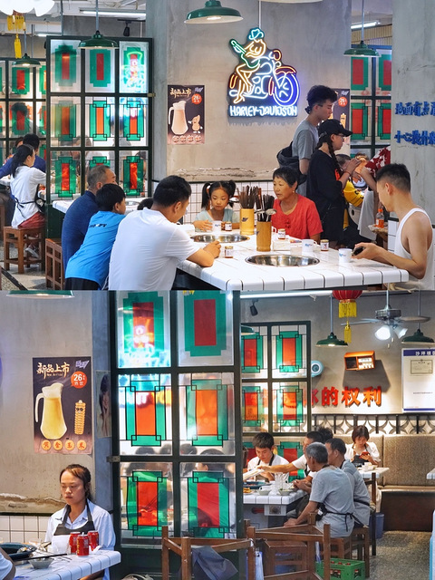 救命这家开在家附近的市井火锅人气真的太旺了下午五点就有人开始排队,外面的坝子都坐满了而且卤味真的太香,不管是朋友聚餐还是自己打牙祭都是在这儿不错的选择·店名:霹雳哥市井火锅地址:重庆凤天路凤西路金色悦城5期·非常市井的平价火锅霹雳哥的装修真的复古又市井小白砖、绿窗户、水泥墙…80年代的市井气息完美还原明档厨房也成了他们的"菜市场",很是新鲜·到店必点菜现卤系列?7?5他们的卤菜都是现卤的,明档窗口