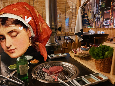 这家烤肉在光环附近感兴趣的小伙伴,私信我避雷 菜品一般环境一般味道一般总体来讲完全没有性价比双人餐标198 但是这家有个服务员小姐姐(我去的时候只有她一个服务员小姐姐,后面我怀疑是他们的情侣店,哈哈哈)长得很好看温温柔柔的态度还很好哈哈哈哈哈哈果然女生和男生都有共同的爱好就是看美女 上张图