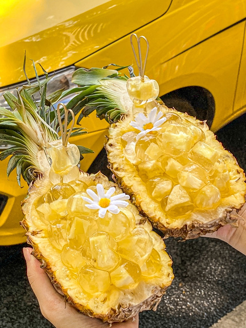 啊啊啊啊这个凤梨啵啵果冻球真的戳我谁能拒绝在重庆的夏天不吃这玩意儿啊端出来的时候就duangduang的而且冰冰凉凉!!里面凤梨肉都是超新鲜拿在手上我感觉都是明星!!回头率爆了-他们还有这个会发光的西瓜啵啵冰粉我也不想吃!!但是实在是太可爱啦里面也加入了各种水果!!火龙果、猕猴桃、哈密瓜咱们就是说实在给太多了!!-如果你路过洪崖洞,一定要来试试他们家的正宗牛油火锅!吃完看夜景,重庆旅游无憾了