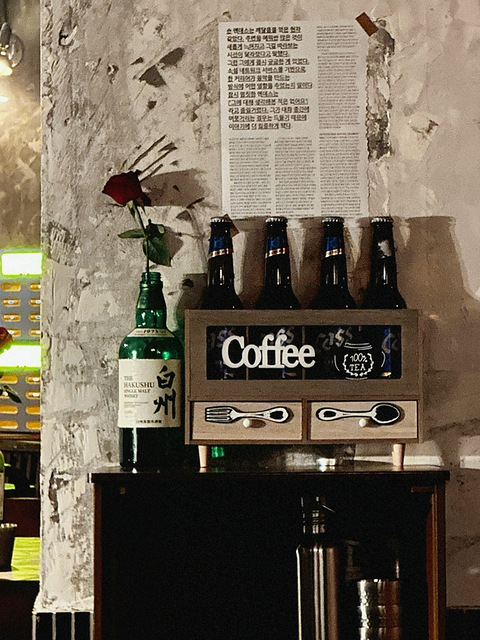 位于鲁祖庙花市 一家很有烟火气的宝藏咖啡馆,大隐于市的感觉。就在石灰市菜市场对面,二楼蓝色牌子,店里不大,老板是社交牛逼人,很健谈,很幽默。点一杯手冲,不锈钢过滤器具,很有特色,盲选豆子,看运气,店内杯子一大特色,很多不同颜色和款式的杯子,可以选一个杯子喝咖啡。结果我盲选到了日晒哥伦比亚的豆子,玫瑰花香味道,有一点点酸,还有水果回香干甜味道,品质不错,价格便宜。[ej=1F604]