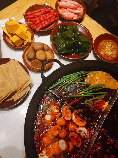 现在比较普遍的装修风格红色这个番茄的饮料我觉得不好喝,另一个感觉香精味有点重菜印象比较深的是血旺,豆干,滑肉和脑花,都很嫩,特别是那个脑花,是把外面那层膜去了的,本来担心会煮散,但还是煮出来还是挺紧致的,吃起来超级嫩!一泯就化,比其他点的脑花好吃!!其他菜就是正常水平,在周围的可以去试试