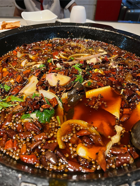 好久没吃肥肠鱼了,跑大坪吃烧哥肥肠鱼!吃了过后,感觉以前没得以前好吃了!不晓得是不是现在嘴巴味道不对头!以前每次都点草鱼,可是现在只有花莲了[ej=1F623]难过 锅里还有其他配菜,比如:粉条,木耳,魔芋…