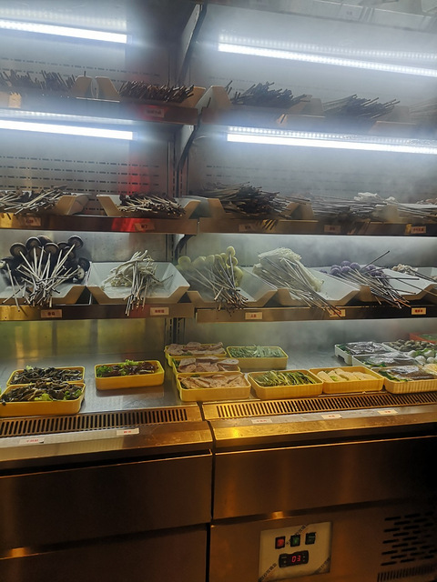 “吃火锅不数签签,吃串串才数签签”生活除了诗和远方,还有撸串与啤酒地点——沙坪坝英伦风情街,挨着周师兄火锅滴。 环境:比较有特色的装修,重庆言子招牌,复古怀旧国潮风主,灯火绚烂的感觉。 味道——底料很香,麻辣鲜香,不同于老火锅的感觉就是牛油味不浓郁,但突出了串串的特色。选的双人餐108元,一斤串串加三个单独的菜。鸭肠赞一个,很鲜很嫩哦!特色肉串基本都是两根穿的,其他特色菜品三到四根签签穿着。感觉有