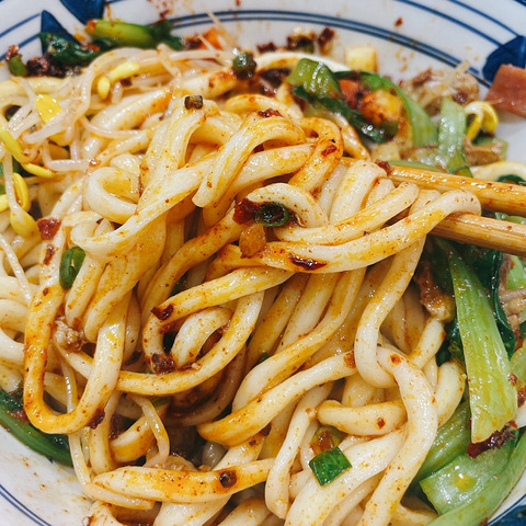 新疆那个拉条子面真的好好吃,很劲道,配上土豆肉丝、红烧牛肉、番茄鸡蛋等等,味道简直不摆了。 重庆貌似没有专门卖拉条子的店,但是那种新疆炒米粉还挺多(我在新疆没有吃过新疆炒米粉),在重庆也点过外卖,我觉得好难吃。还是拉条子最好吃。问了好几家新疆菜和新疆羊肉串的店都不卖拉条子… 最后在这里吃到了,完美!