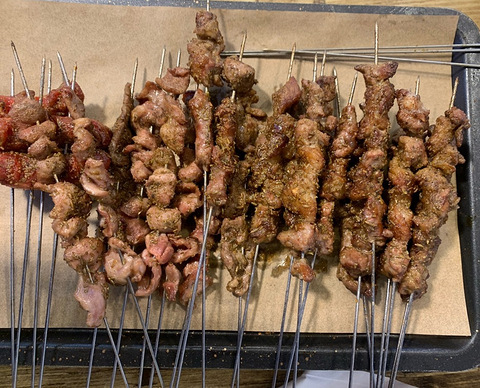 肉串新鲜,用铁签的肉块大小都是刚刚好,推荐羊肉串,肥瘦相间的最好吃。