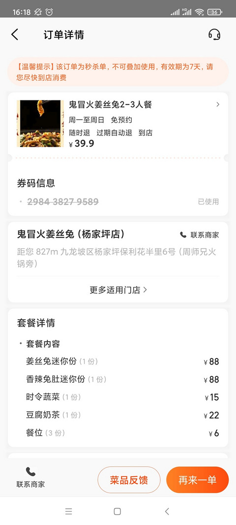 我正在参加【今天吃什么】活动,随手晒美食赢VVC女神帽哦!https://go.cqmmgo.com/forum-174-thread-95031620638273996-1-1.html 前几天刷某点评的限时秒杀活动,看到了这个39.9的姜丝兔,看了评价还可以,就调好闹钟去抢了个。本来39.9的三人套餐没抱太大希望,觉得可能当顿工作餐吃就行,今天中午去吃,大大超越了期望值。下午准备再去抢一张秒杀