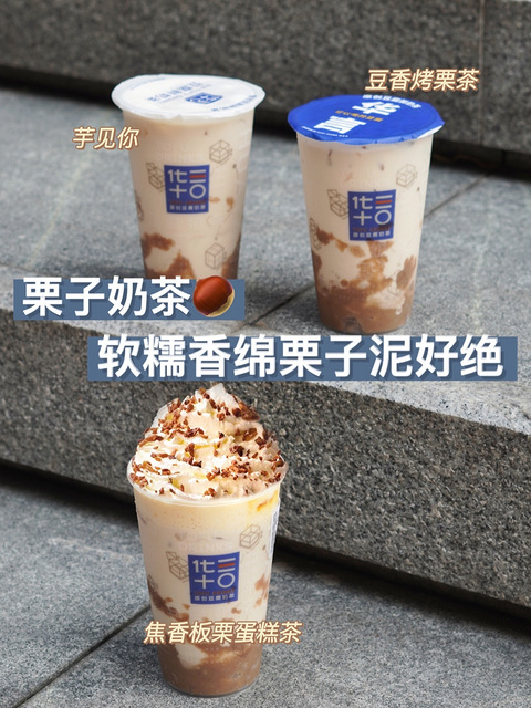 又是一年冬时除了烤地瓜、糖炒板栗和冰糖葫芦这些冬日伴侣一杯超暖人心的热奶茶也是独一无二的温暖陪伴·最近体验了华言家的冬日板栗系列新品每一款都是暖暖的味道很浓郁,超级适合冬天喝快喊上小伙伴们一起来打卡吧·店名:华言豆腐鲜奶茶(八一路好吃街店)地址:解放碑八一路181号第一层四号店铺营业时间:周一至周日 10:00-24:00人均:12RMB-这次一共体验了冬日板栗奶茶系列的三款新品栗过烟火三冬暖的主