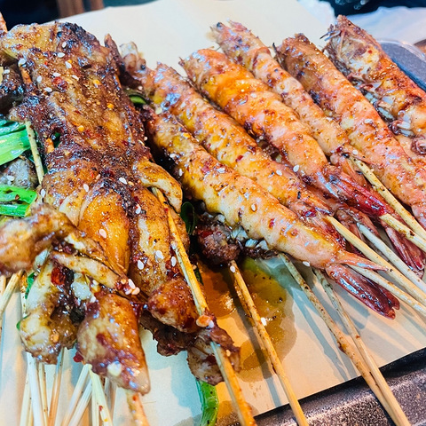 明明是能够靠实力出圈的烧烤店,结果还靠了一把颜值,店不大,但店员特别多!而且全是小哥哥!还是一点都不油腻的那种,可自行来体验!但我要说说他家烧烤,很少在江渝北吃,这家是很多朋友推荐的,果然群众的眼光是雪亮的!烤大虾一绝,烤牛蛙我觉得一般,可能是因为牛蛙太大不太入味