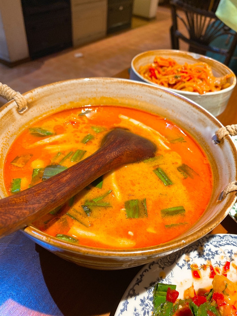 现在重庆出了很多这种泰餐,味道不错价格不贵这家的冬阴功汤里面东西多惨了,才38元一份,味道也不错