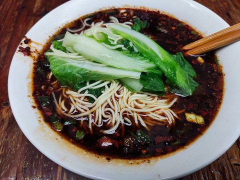 最近大火的盘溪小红面,但是我吃的不是这家,吃的旁边的老太婆面,也非常好吃,猪肉自己熬的,很香。香。