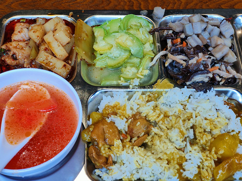 关于建设厂民主村我想老重庆人都不陌生,以前这片全是工人住房,八十年代这里的居民都是“铁饭碗”的代名词。时代更迭,当年厂里的小伙子小姑娘都成为了爷爷婆婆,建设厂也从谢家湾搬迁至巴南区。但是厂搬了老居民还在,他们的日常生活怎么能少得了吃饭的地方呢?所以有个这间“民主村社区食堂”,随着民主村打造成了网红打卡地,这里也是不少重庆人休闲娱乐的地方!至从开了这家食堂我就一直想来试试,毕竟便宜、菜品多、环境干净