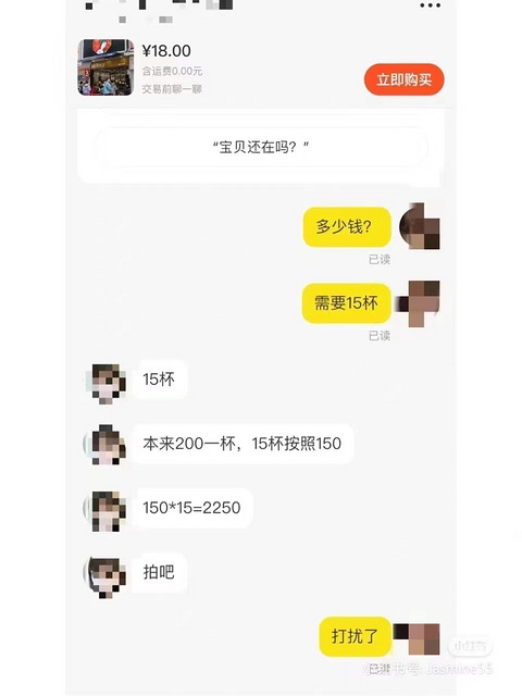 网上看到的图片,今天茶颜悦色开业,不是人很多嘛。所以有网友在闲鱼上咨询了代买服务。不问不知道,一问这价格不得了。 一杯200元,就算有个折扣也要150元一杯。 为了一杯奶茶至不至于哦?
