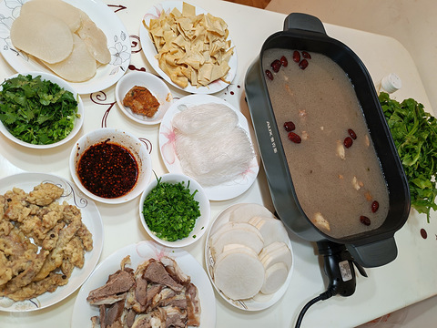 冬天的羊肉汤锅 豌豆尖酥肉汤冬天的开始 黑芝麻豆浆,软饼莲藕排骨汤红糖鸡蛋醪糟超大个贡菜馅饺子