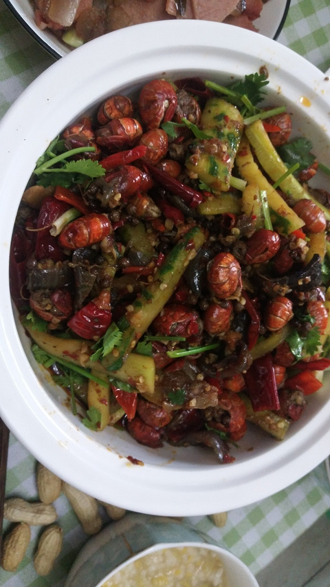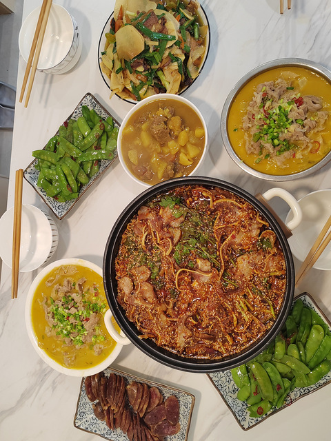 放假的第一天:麻辣龙虾尾毛血旺自家腊肉放假的第二天早餐:包面椒麻清汤沾水