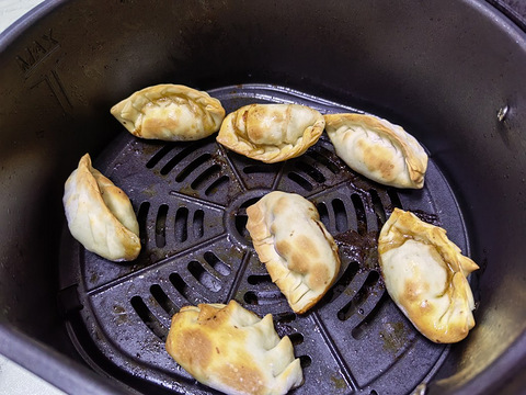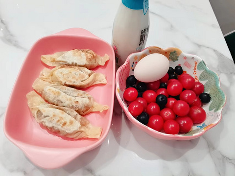 今天烤了板栗,然后看到旁边包的饺子,就拿来烤了,200℃十分钟,烤了好香啊,皮很酥脆,馅也好好吃[ej=1F61D]
