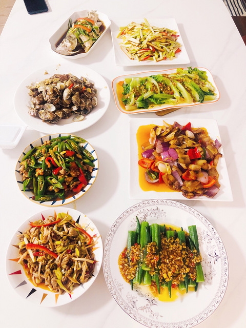 家常鳝段,番茄牛骨汤,白灼菜心,蒜香蒸猪排,自制糖大蒜,都是下饭菜。