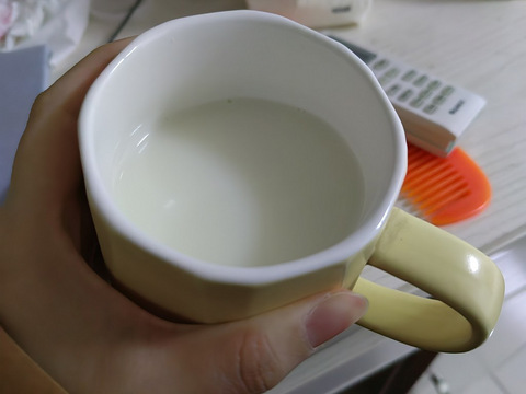 今天家里自己打了豆浆,我又想和牛奶,我妈就在豆浆里混了牛奶一起煮,我不晓得外面有没有这样弄过,反正平时我都是要不寡豆浆,要不寡牛奶,没想到两个混在一起煮,这么好喝!大家快来尝试!混在一起,有豆子的清香,有牛奶香,但牛奶腥味点都不重,而且我是甜豆浆党,这样煮出来的豆浆甜甜的,好喝呀!