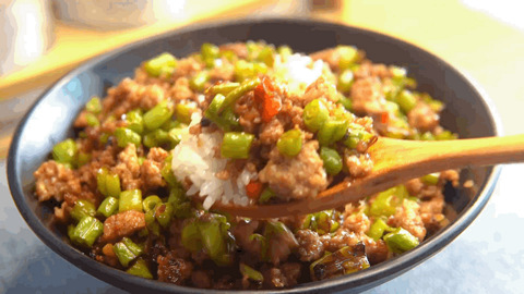 搬运自微博学长食堂。无敌下饭好吃的家常肉沫豆角~煸炒出来的肉沫搭配豆角真的是绝了!豆角吃起来脆脆的,饱满多汁,口味清爽独特,脆口滑嫩超级适合一人食!